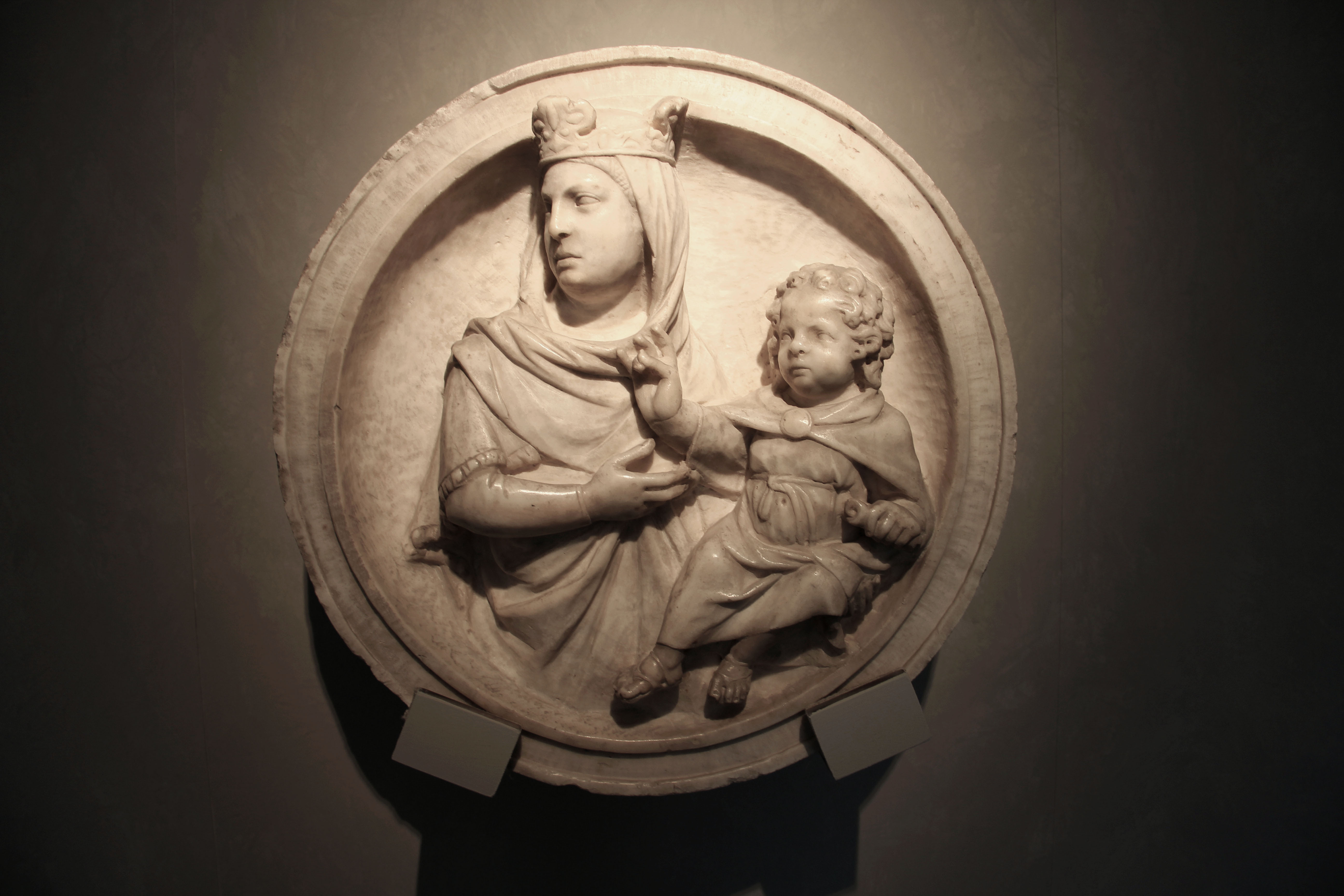 Nella seconda trova spazio una Madonna con Bambino, tondo in marmo che rappresenta uno dei vertici dell’opera del giovane scultore. Proveniente dalla collegiata di Sant’Andrea, è confluito nel Museo di Empoli. Le forme armoniche mostrano come l’artista avesse iniziato a muovere i primi passi sotto la guida paterna, ma la torsione del volto della Vergine permette di cogliere, in fieri, quell’idea di movimento che Pisano svilupperà nell’arco della sua carriera.