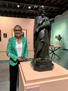 l’assessore Briani con il bozzetto in bronzo della statua di Dante al GAM
